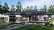 F-14336 - Проект одноэтажного дома 18 на 21, площадью 200 м² с террасой, баней, гаражом на 2 машины, бассейном и 2 спальнями